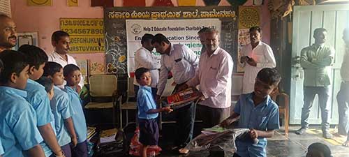 Items Distributed: notebooks, compass box, color sketch pen box, pen, pencil, sharpener and eraser etc..